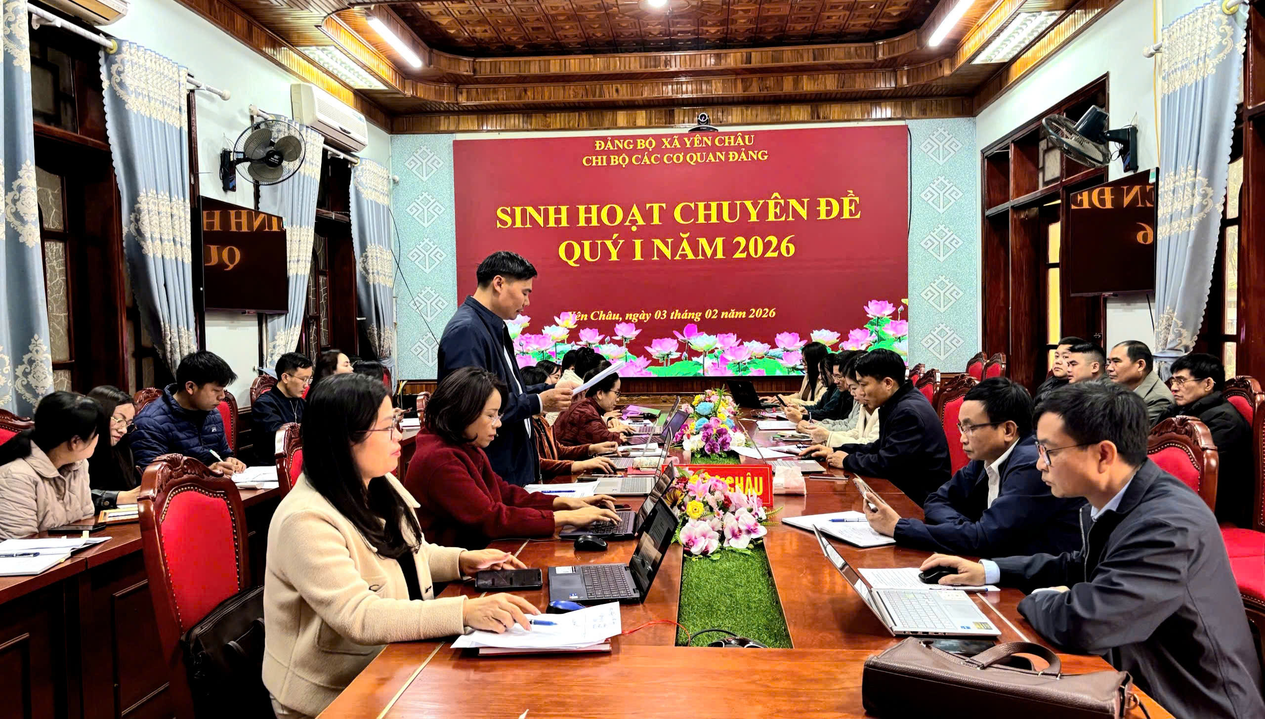 Sáng ngày 26/12, UBND xã Yên Châu khoá I, nhiệm kỳ 2021 - 2026 tổ chức phiên họp UBND xã nhằm đánh giá kết quả thực hiện nhiệm vụ phát triển kinh tế - xã hội, quốc phòng, an ninh tháng 12/2025; triển khai nhiệm vụ trọng tâm công tác tháng 1/2026. Dự phiên họp có đồng chí Lù Văn Cường – Bí thư Đảng ủy, Chủ tịch HĐND xã, đ/c Vì Văn Ngọc, Phó Bí thư TT Đảng ủy xã; lãnh đạo UBND xã; lãnh đạo các cơ quan, đơn vị, hiệu trưởng các trường học trên địa bàn xã. Đồng chí Đoàn Xuân Ngọc, Phó Bí thư, Chủ tịch UBND xã chủ trì phiên họp.