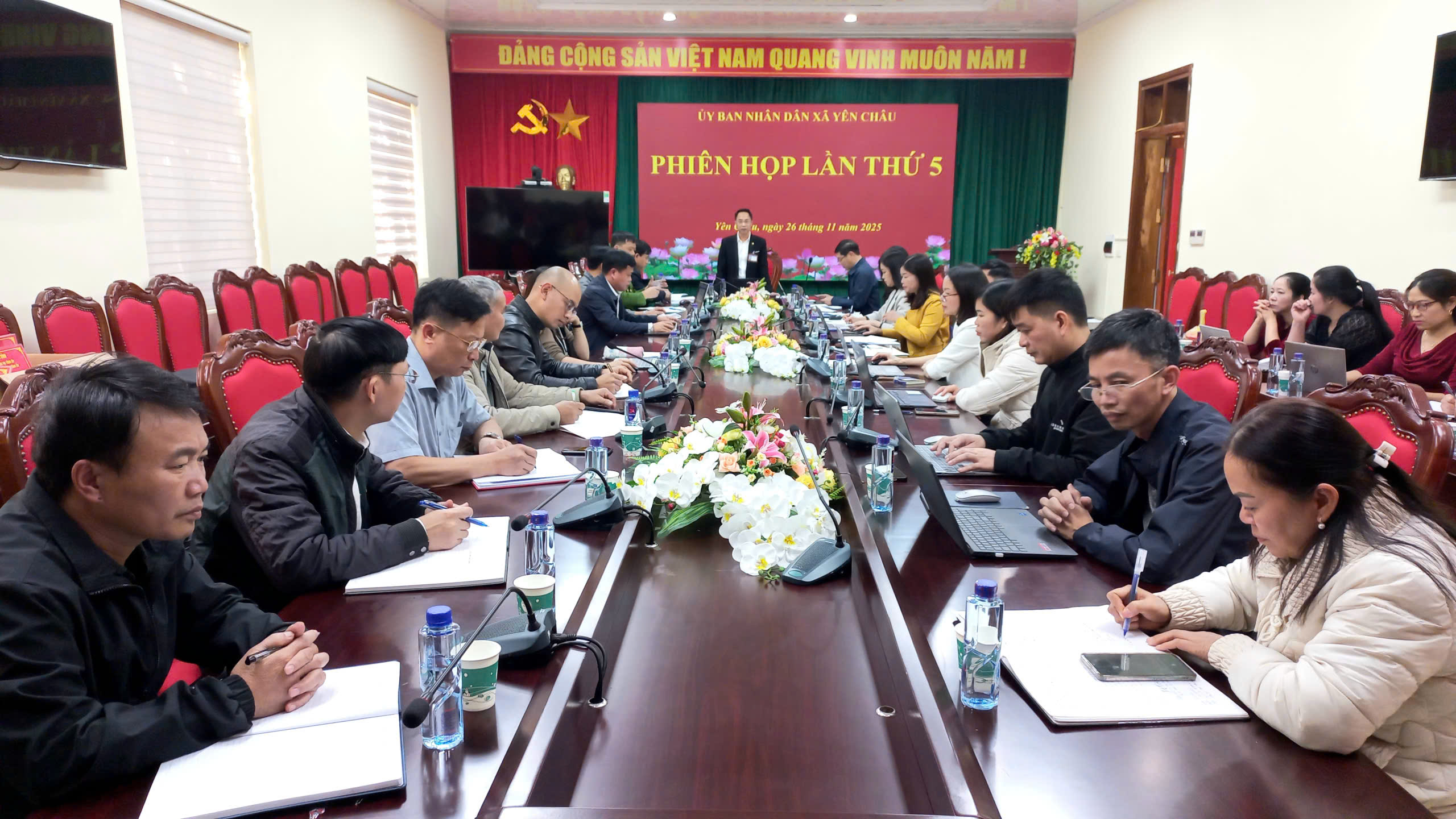Chiều ngày 26/11, UBND xã Yên Châu tổ chức Phiên họp lần thứ 5, nhằm đánh giá kết quả thực hiện nhiệm vụ phát triển KT-XH, QP-AN tháng 11, nhiệm vụ trọng tâm công tác tháng 12 năm 2025. Đồng chí Đoàn Xuân Ngọc- Phó Bí thư, Chủ tịch UBND xã chủ trì phiên họp.